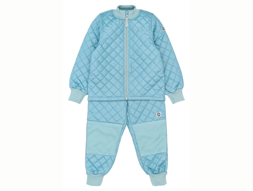Thermo set in a light blue tone from Mikk-line featuring quilted panels and soft rib trims.