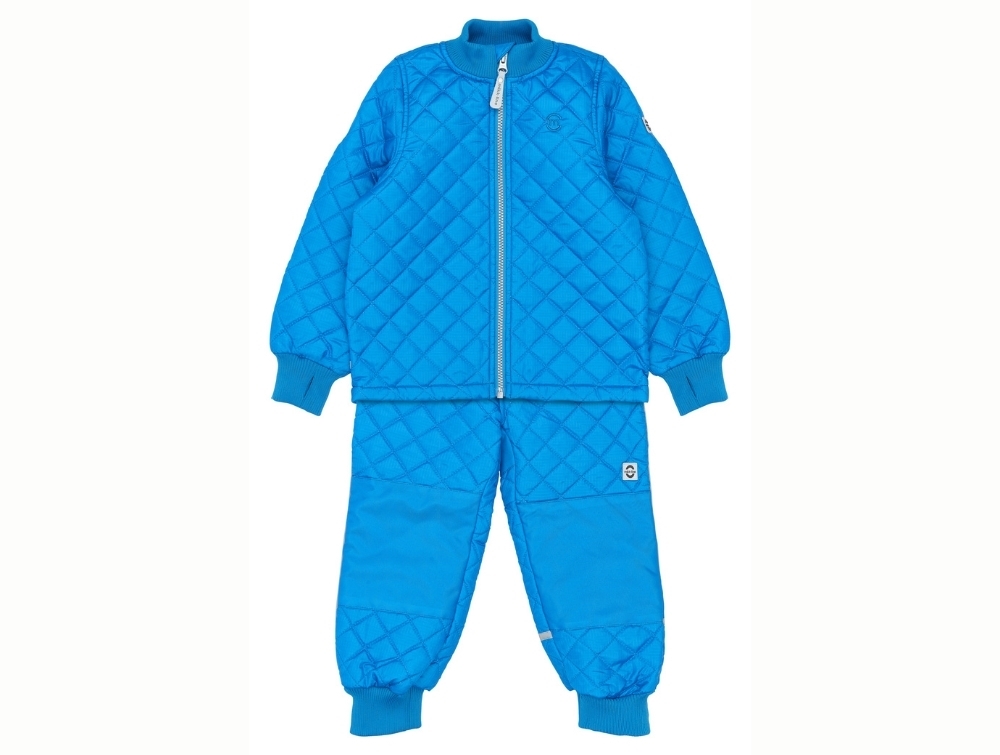 Thermo set in a strong blue tone from Mikk-line featuring quilted panels and ribbed trims.