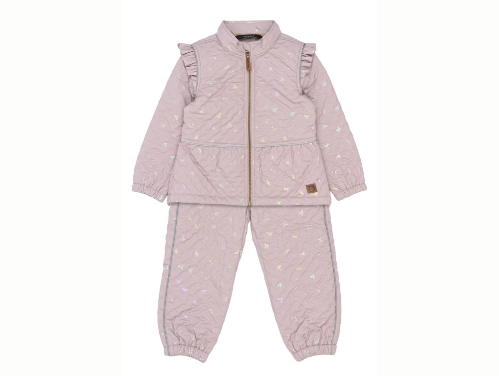 Thermal set in a dusty rose tone from Mikk-line with frills and all-over foil bow print.