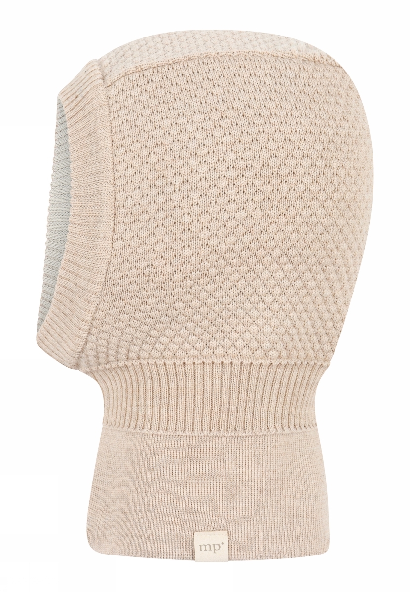 Balaclava in the color beige melange from MP made of 100% merino wool on the outside and 100% cotton on the inside.