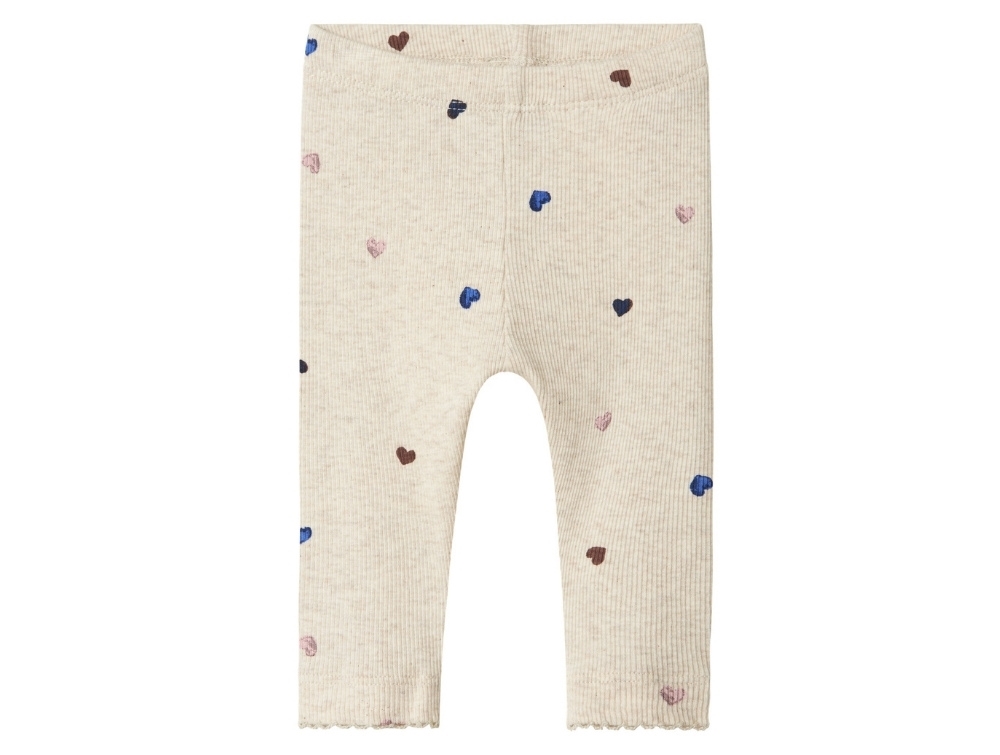 Leggings in beige shade (peyote melange) from Name It featuring small heart prints across the fabric.