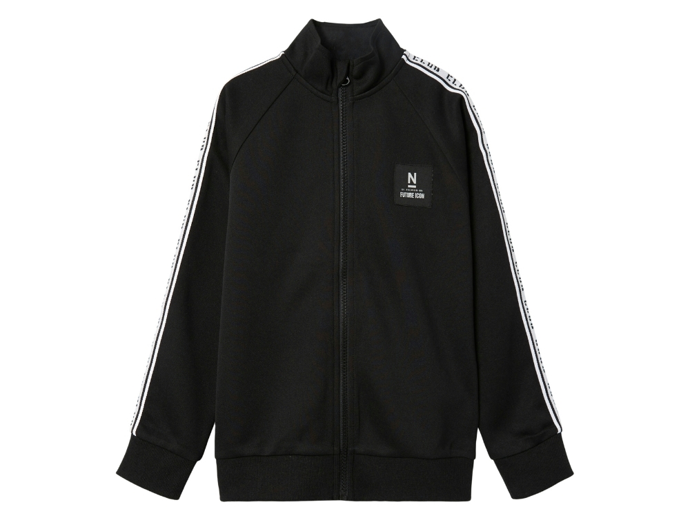 Cool sporty sweat cardigan in black with a zipper and white piping from Name It.