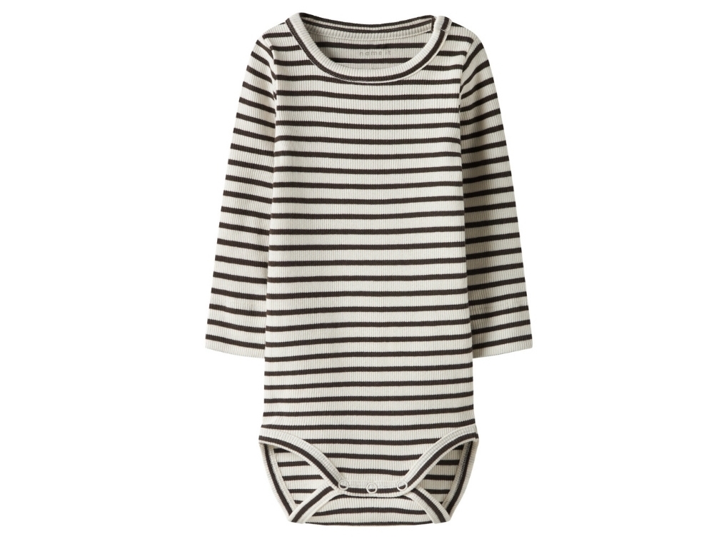 Body in off-white shade with dark brown stripes from Name It. Made from soft rib fabric with stretch for a comfortable fit and great freedom of movement for baby.