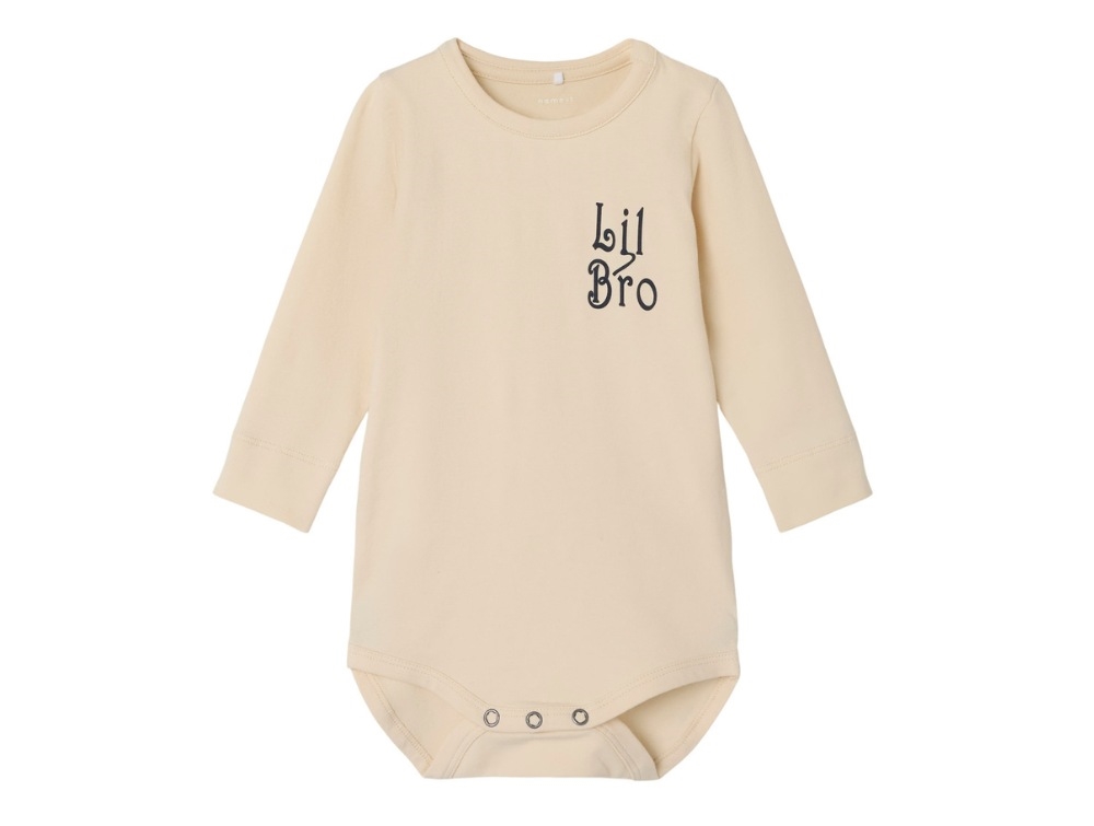 **Bodysuit in off-white (white swan) with "lil bro" print from Name It.**
