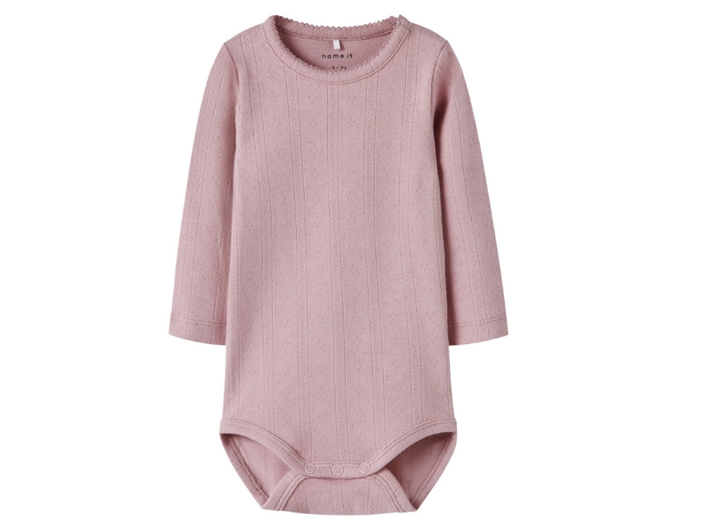 Bodysuit in light pink shade (burnished lilac) from Name It with a delicate pointelle pattern.