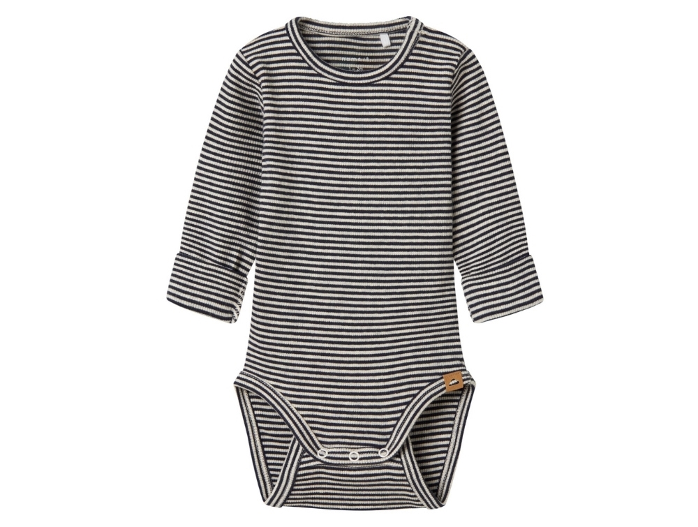 Body in navy blue shade with fine stripes from Name It. A classic soft rib quality with stretch for a comfortable fit and easy movement for baby.