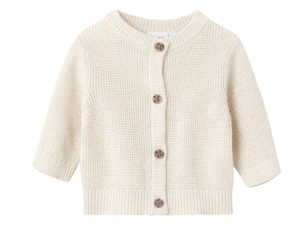 Cardigan in off-white shade from Name It. Knitted in a soft waffle texture that adds a beautiful and timeless look. Made from 100% organic cotton, gentle on the skin and ideal for everyday wear.