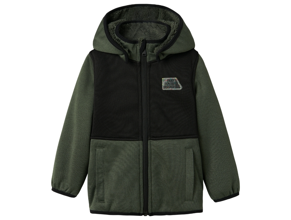 Transitional jacket in the color climbing ivy with teddy lining from Name It.