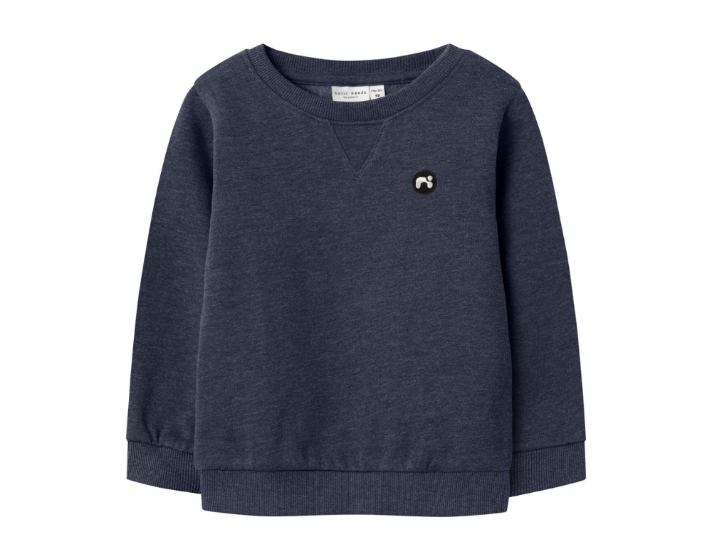 Sweatshirt in dark blue shade from Name It. A soft and versatile top in loop back quality with a round neckline and small chest badge for a relaxed look.