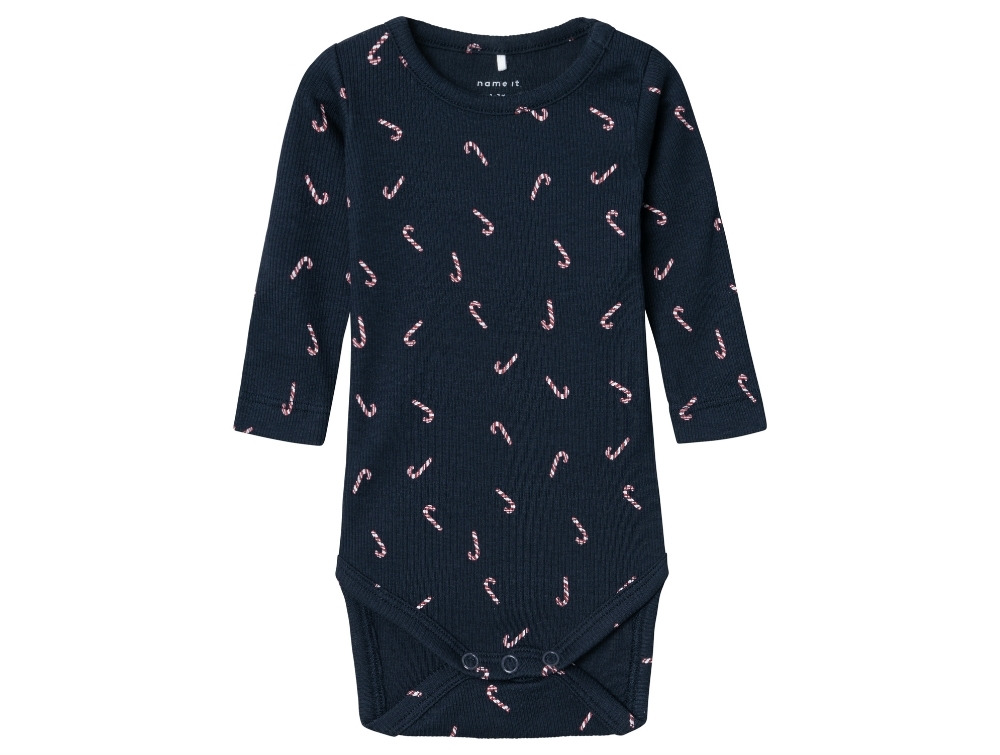 Bodysuit in the color dark sapphire with candy cane print from Name It.