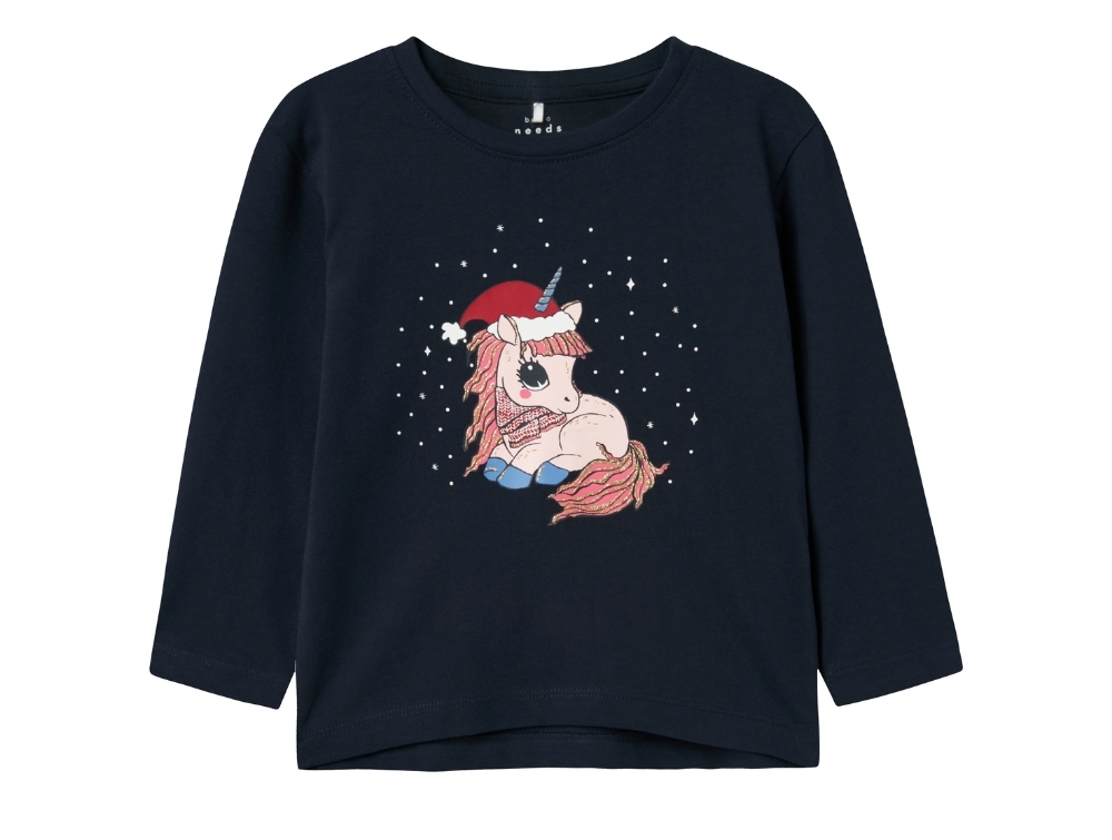Top in the color dark sapphire with a Christmas pony from Name It.