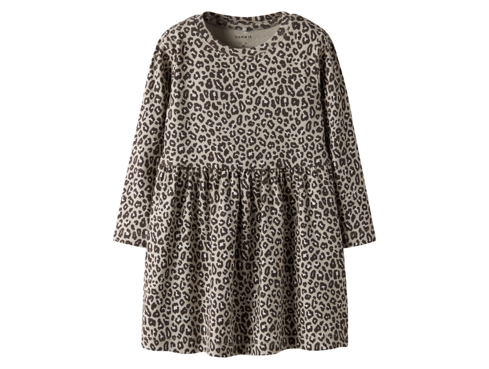 Dress in beige shade from Name It with an all-over leopard print. Made in soft jersey quality for a comfortable fit, perfect for everyday wear.