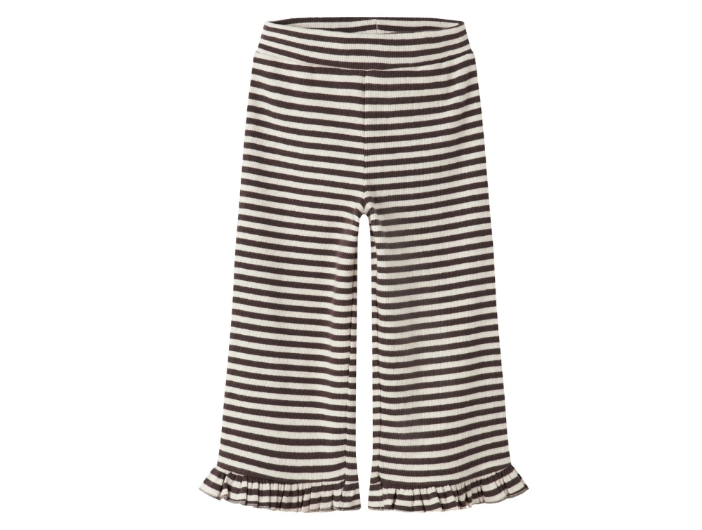 Name It striped trousers in brown and off-white with frill detail