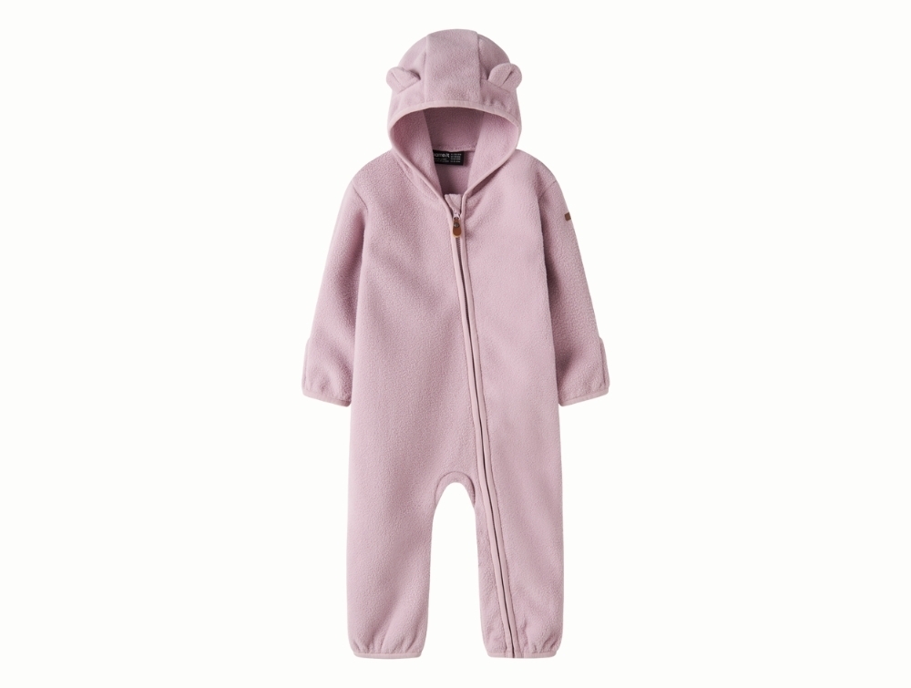 Fleece car suit in a light pink shade (keepsake lilac) from Name It made in a soft and lightweight fleece quality.