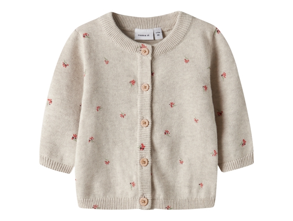 Cardigan in a beige shade (peyote melange) from Name It featuring small floral details all over.