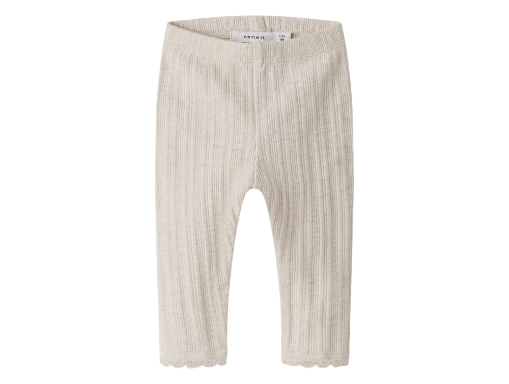 Leggings in a beige shade (peyote melange) from Name It made from soft rib knit with vertical texture.