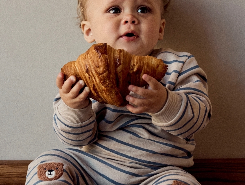 • Striped design with bear embroidery
