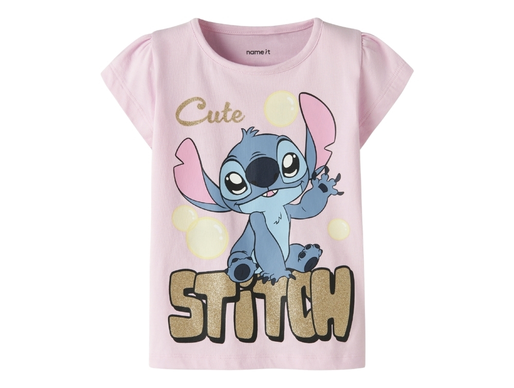 Name It t-shirt in pink shade with Stitch motif