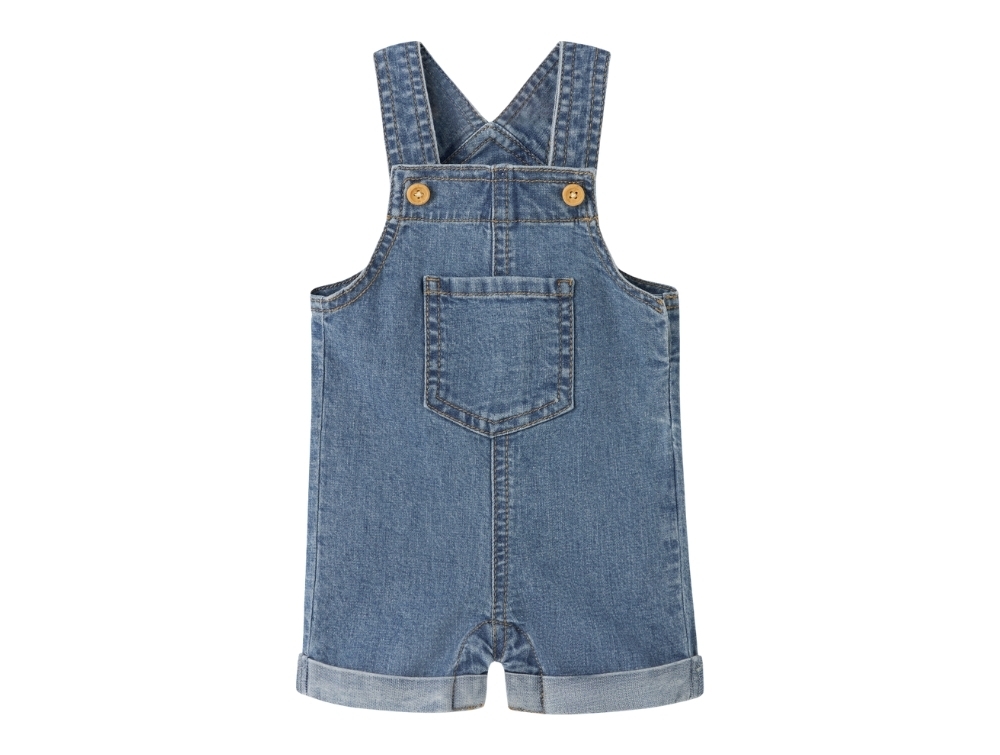 Denim overall shorts in a blue shade (Medium Blue Denim) from Name It with a classic design and front pocket.