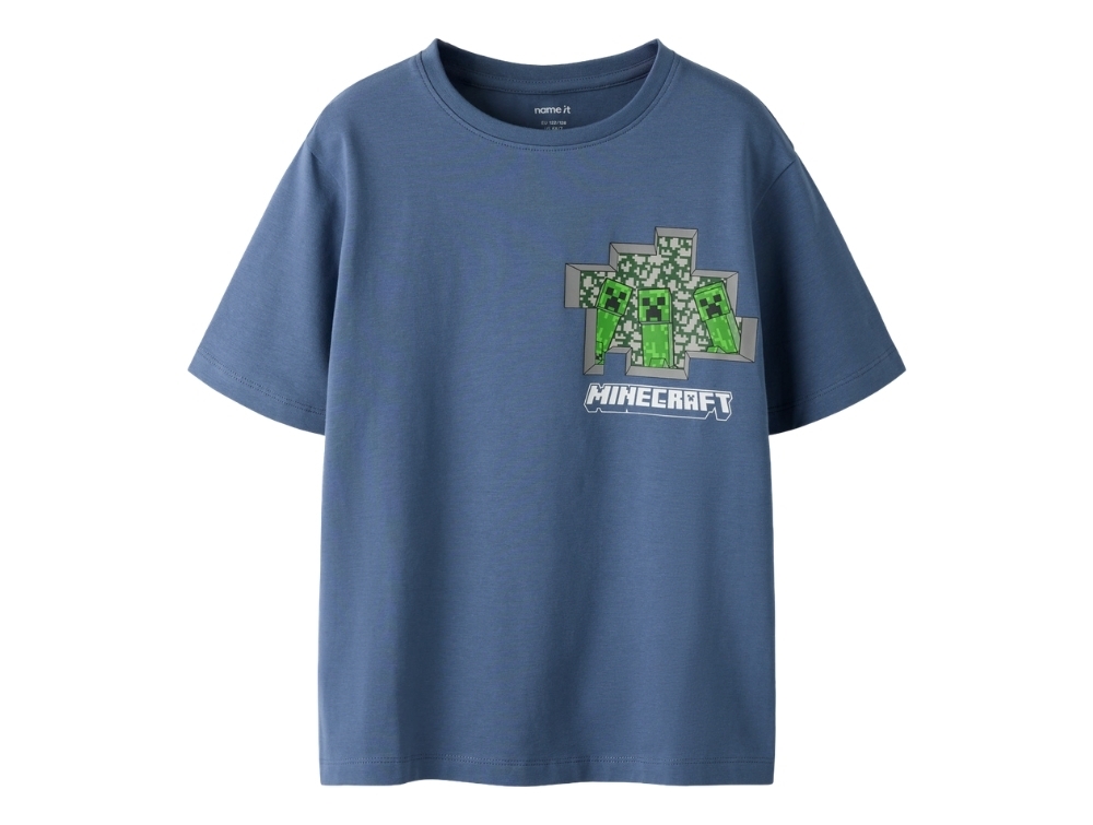 T-shirt in a blue shade (vintage indigo) from Name It with Minecraft print.