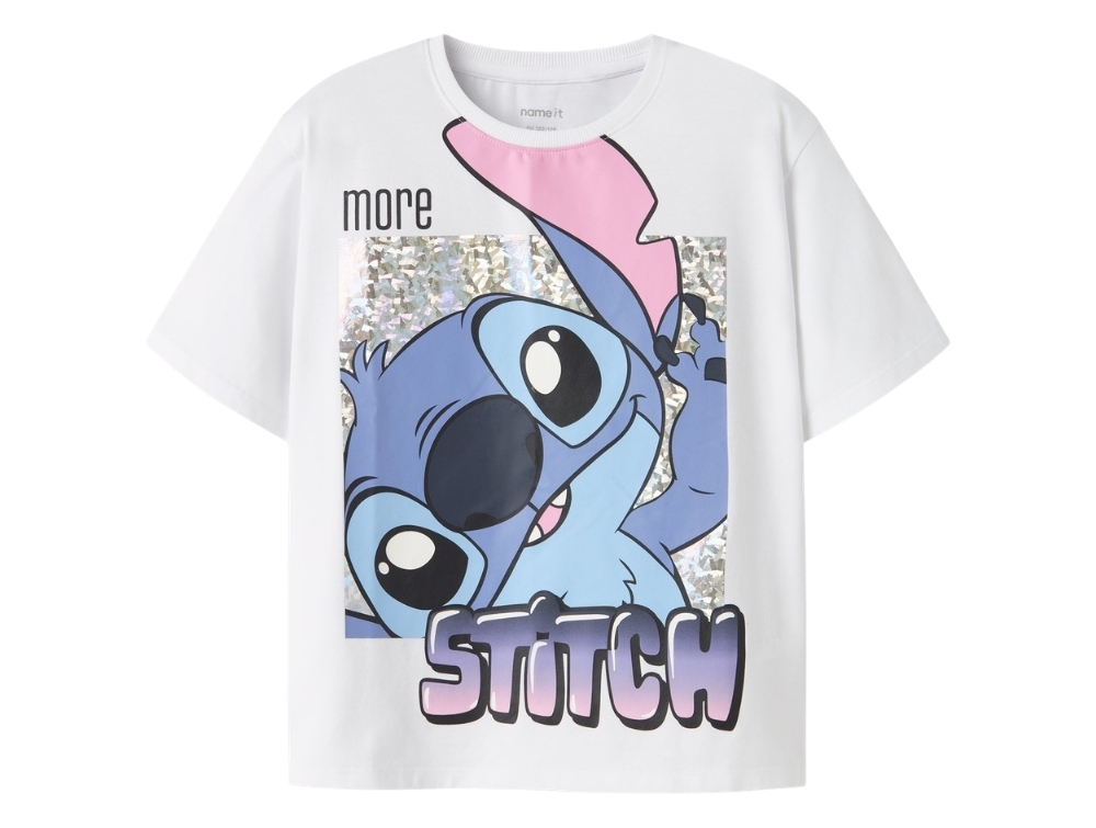 Name It t-shirt in white with Stitch print