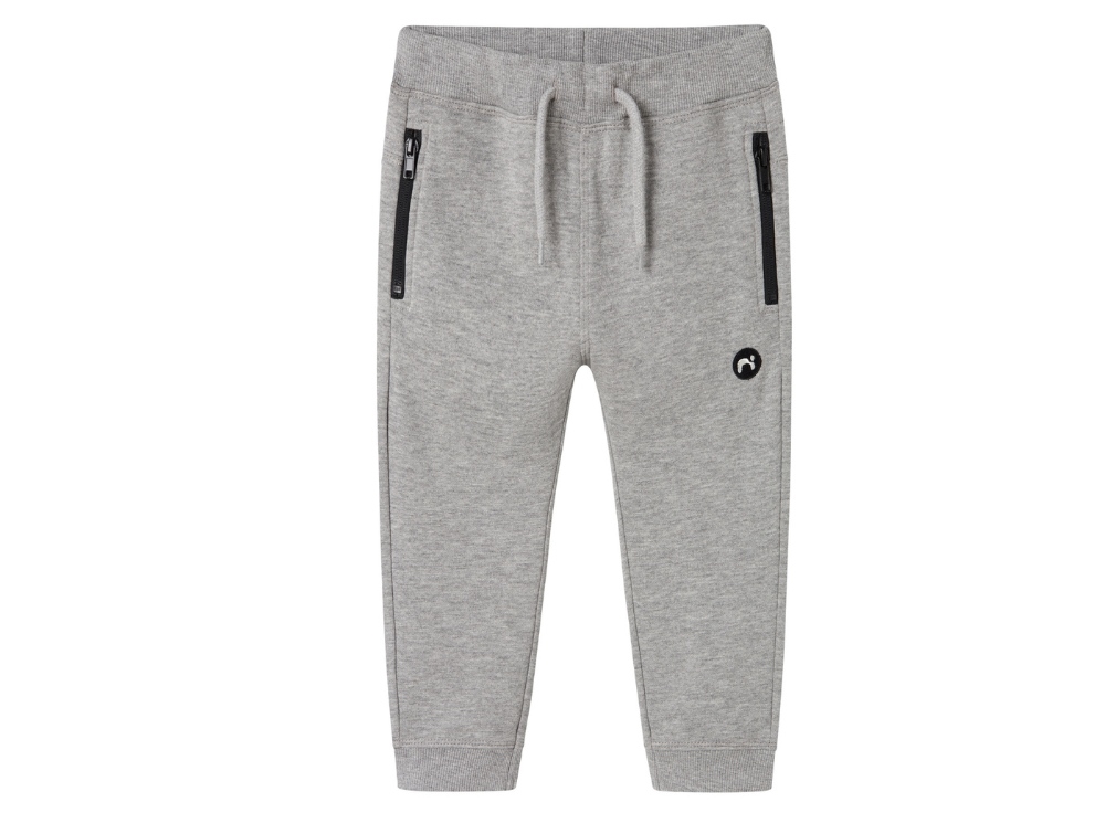 Sweatpants in grey melange from Name It. Made in soft sweat fabric with a brushed inside for a gentle and comfortable feel. The trousers feature an elastic waistband with adjustable button and fixed drawstring for a secure fit.