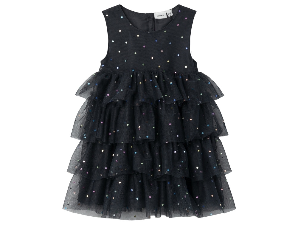 Dress in India ink color with multicolored glitter dots from Name It.