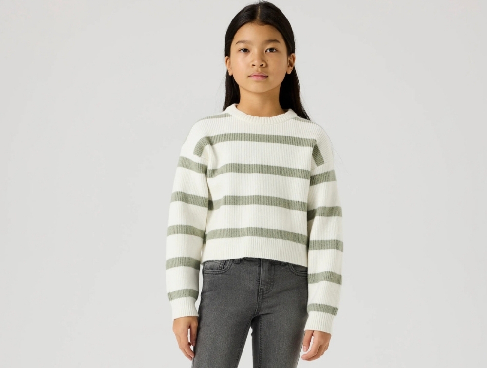 Knitted pullover in an off-white shade with green stripes (Cloud Dancer/ shadow) from Name It.