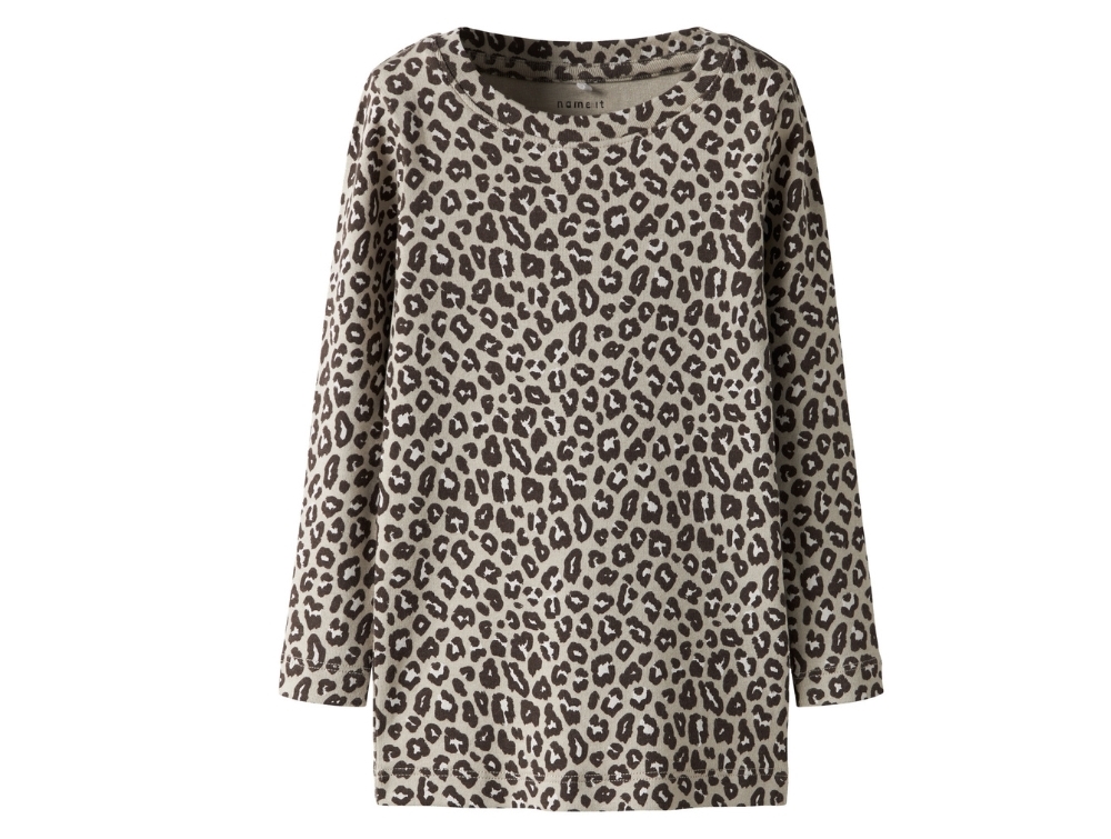 Ribbed blouse in beige shade from Name It featuring an all-over leopard print. Made from soft and stretchy organic cotton and modal blend for a comfortable fit and great freedom of movement.