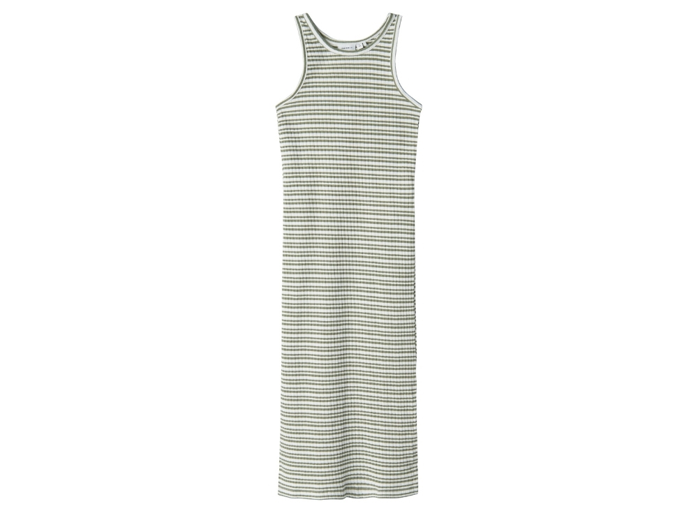 Name It oil green/bright white striped maxi tank dress
