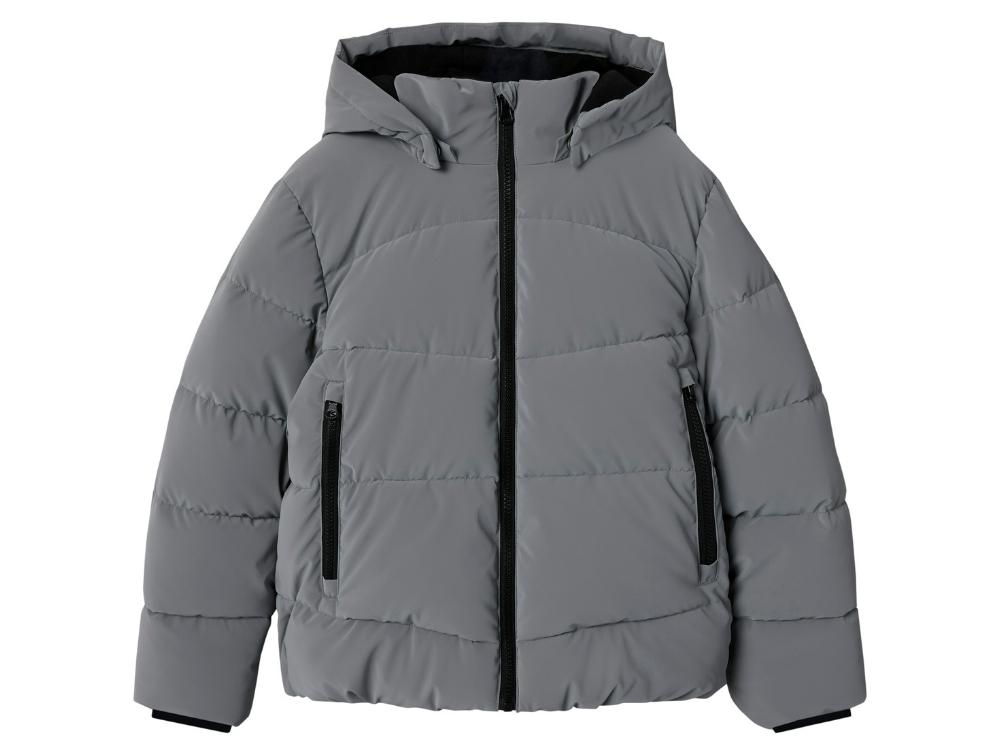 This winter jacket for kids combines functionality with a modern design. The detachable hood ensures safety, while the front zip fastening and zipped side pockets make it practical and easy to wear. Reflective details on the back improve visibility in the dark.