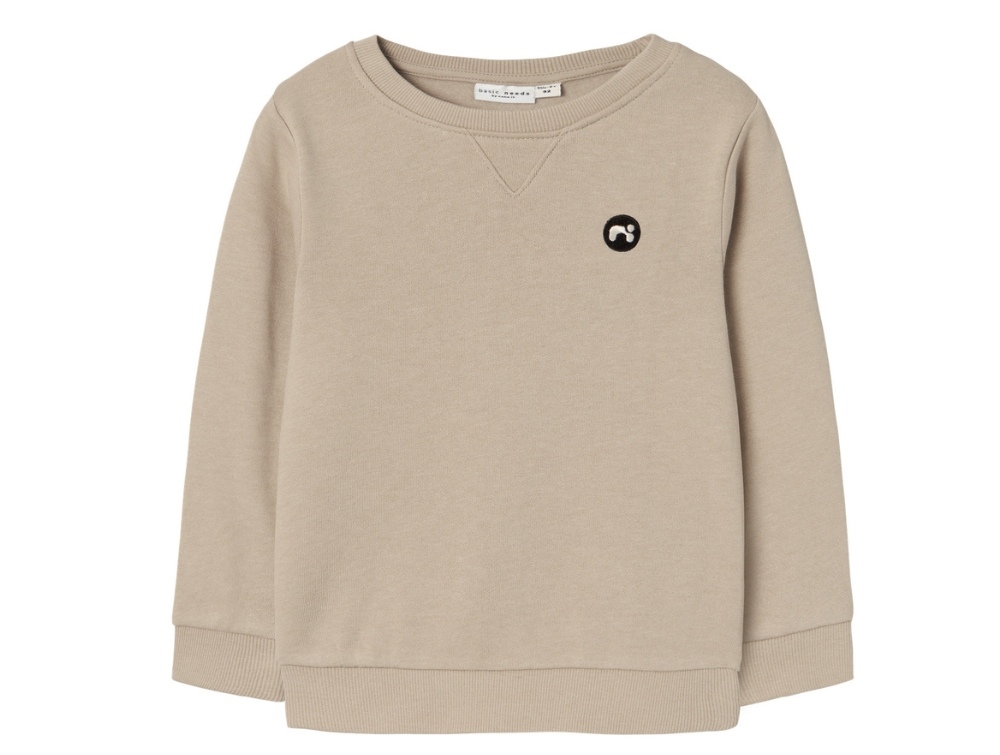 Sweatshirt in beige shade from Name It. A classic sweatshirt made in soft loop back fabric with a round neckline and small chest badge for a casual and sporty look.