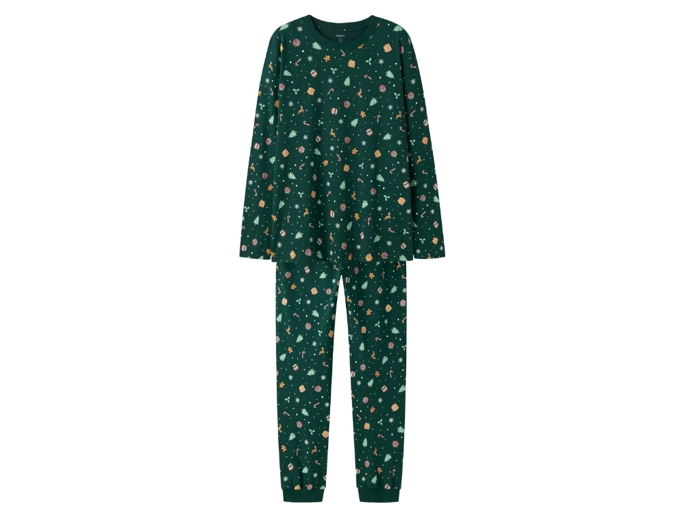 Adult pyjamas in dark green shade (botanical garden) with Christmas print from Name It.