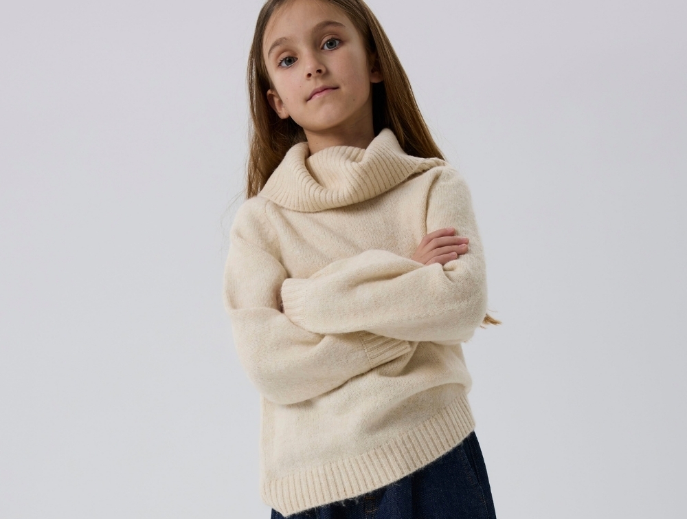 Knitted pullover in beige shade (peyote melange) from Name It with a high collar.