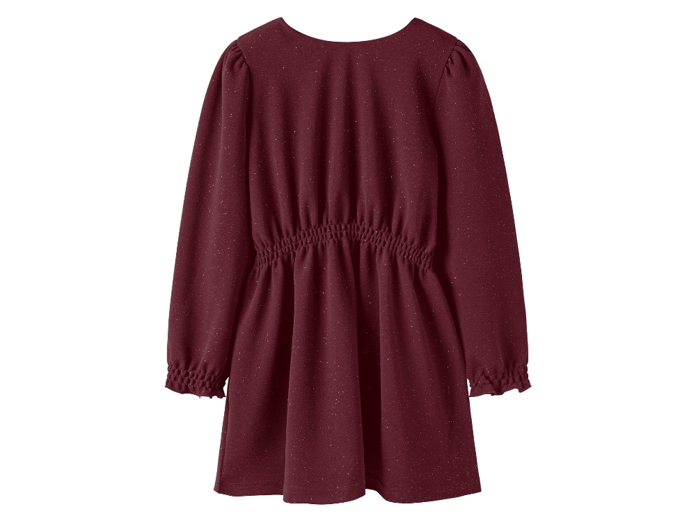 Burgundy dress from Name It with subtle glitter details woven into the fabric.