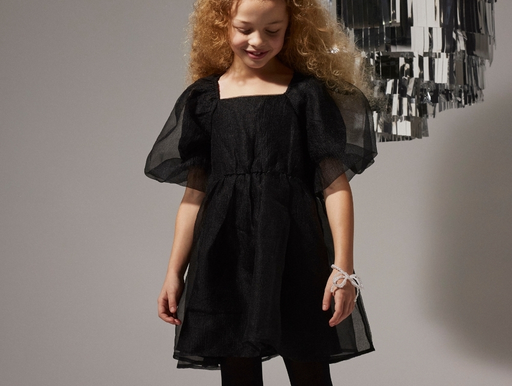 Light and elegant dress in black chiffon from Name It with puff sleeves and a square neckline. The dress features a feminine, airy silhouette with a short length and relaxed fit.