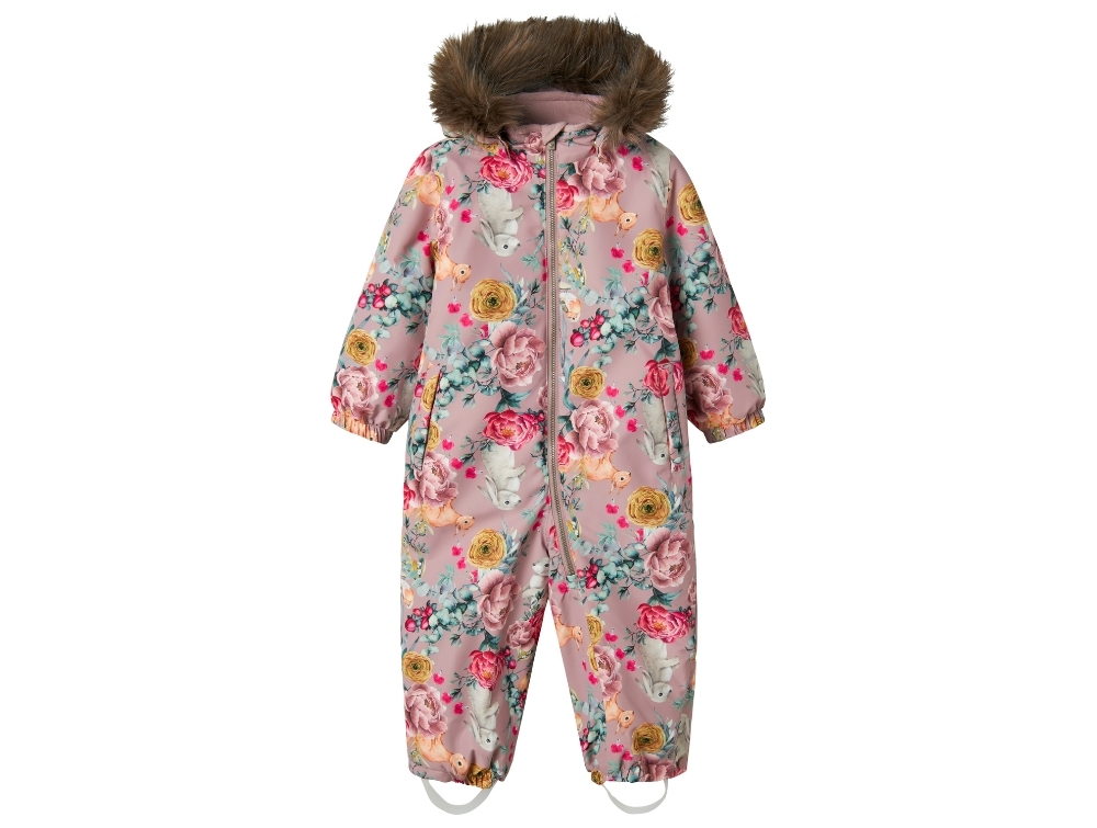 Rose shade snowsuit from Name It with floral print and detachable hood