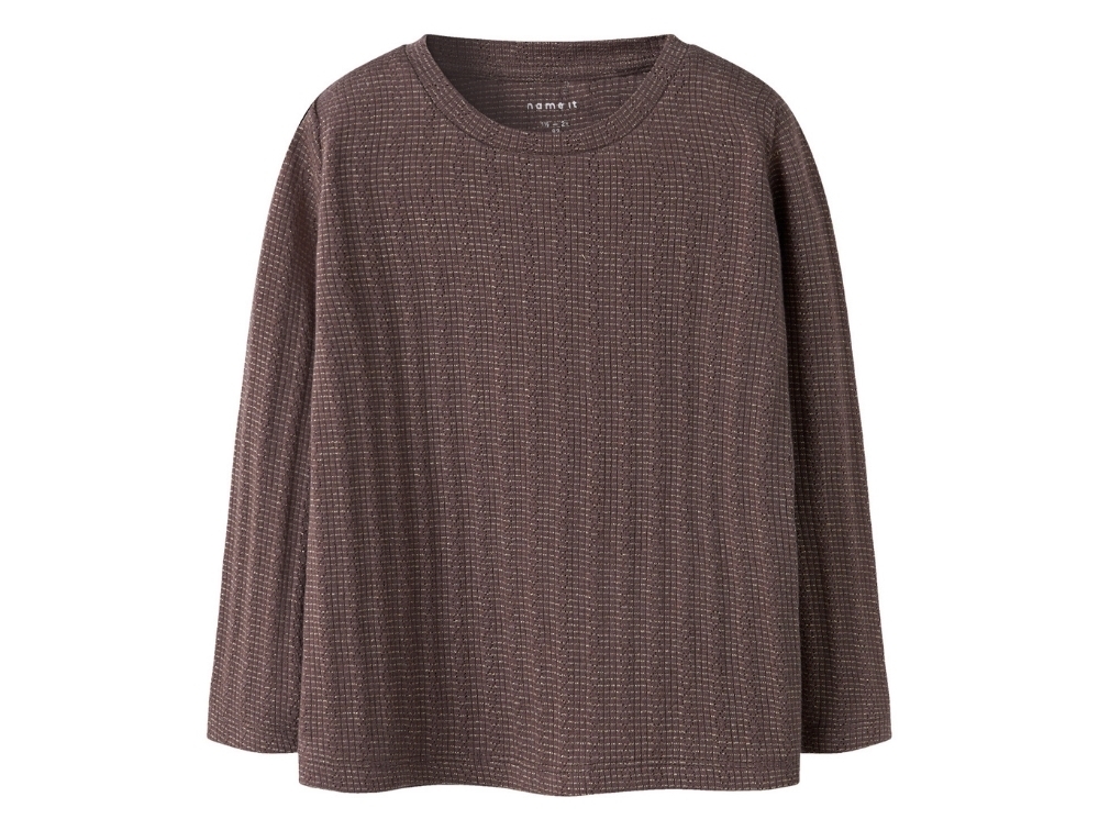 Brown ribbed blouse (peppercorn) from Name It MINI featuring a beautiful glittery texture. A simple and comfortable style perfect for everyday wear.