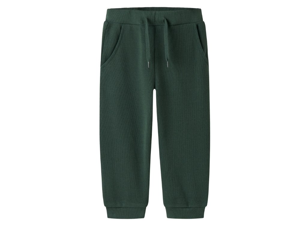 Sweatpants in green shade (garden topiary) from Name It MINI. Made from soft unbrushed fabric with adjustable waist and drawstring for a comfortable fit.