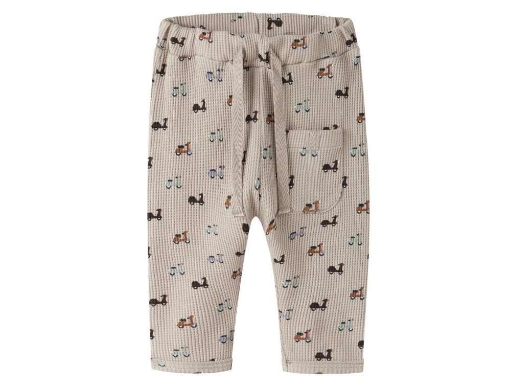 Trousers in brownish shade (island fossil) from Name It featuring an all-over scooter print.