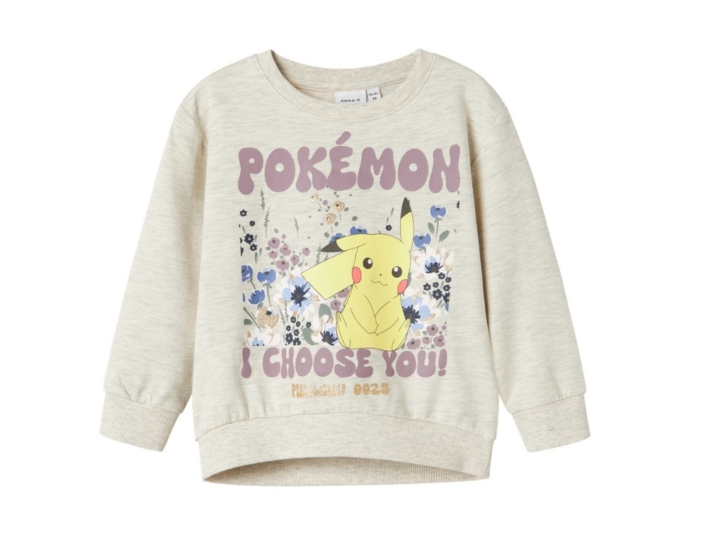 Sweatshirt in off-white shade from Name It featuring a Pikachu print with glitter details. A fun and soft sweatshirt for children who love the Pokémon universe.