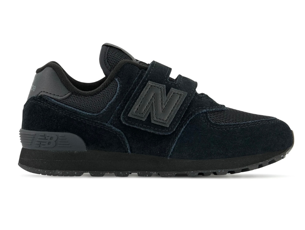 New Balance 574 sneaker in black with classic design and lightweight construction