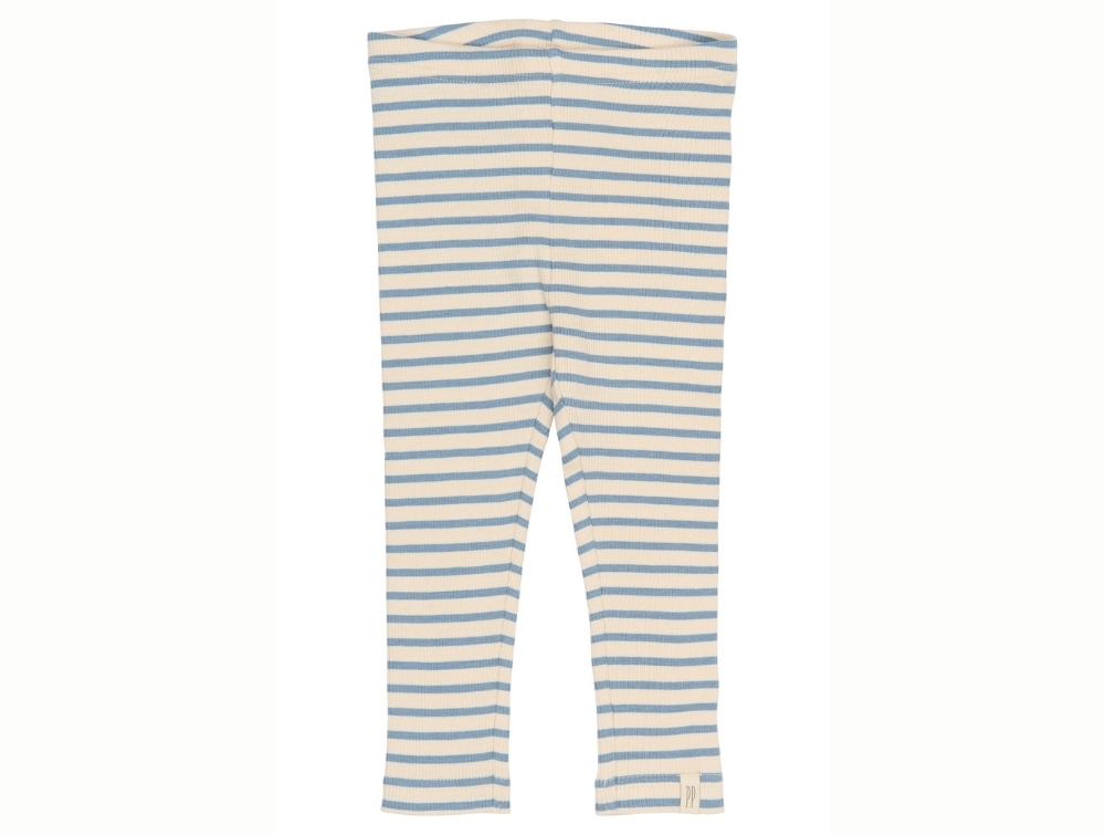 Petit Piao leggings in off-white with blue stripes and stretchy rib fabric