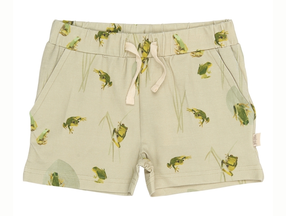 Petit Piao shorts in light green with frog print in GOTS-certified cotton