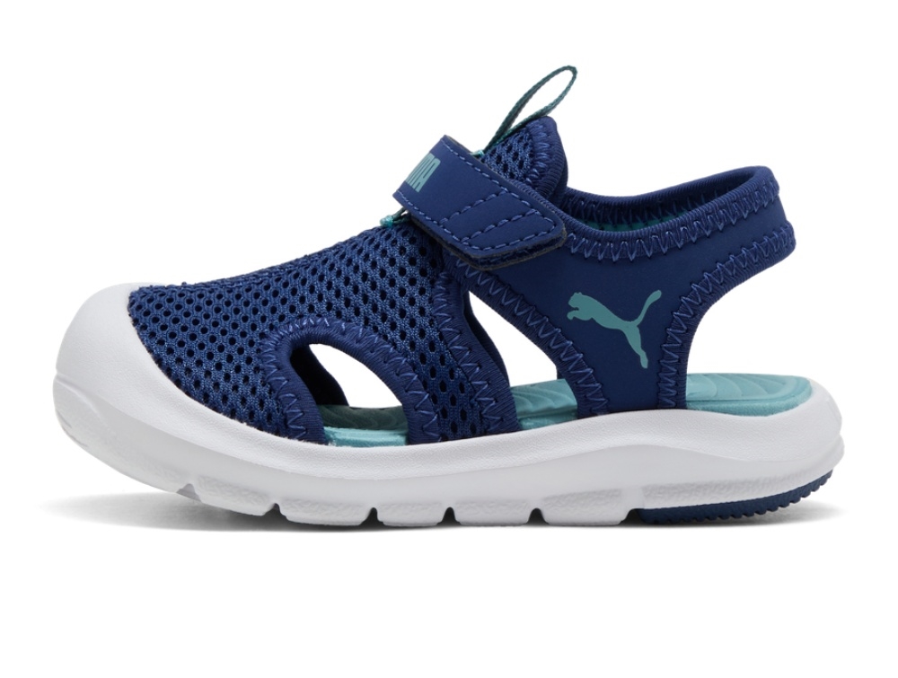 Puma Fun Racer sandal in blue with mesh and hook-and-loop closure