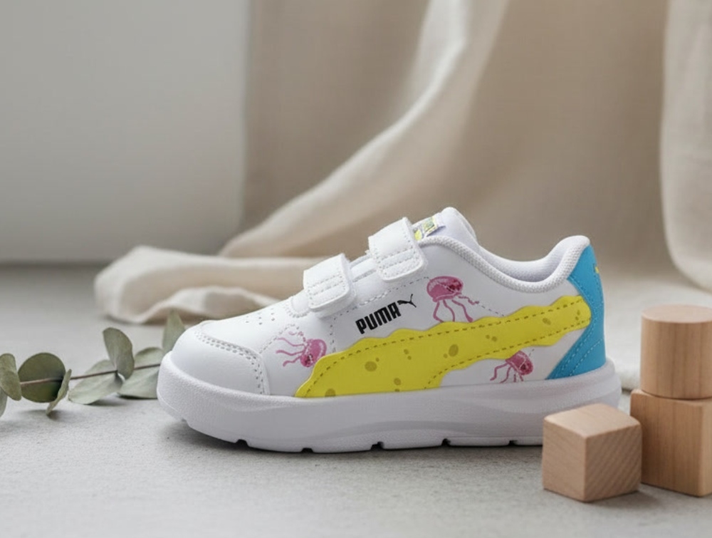 Puma white celandine/blue pink sneaker Evolve Court SpongeBob