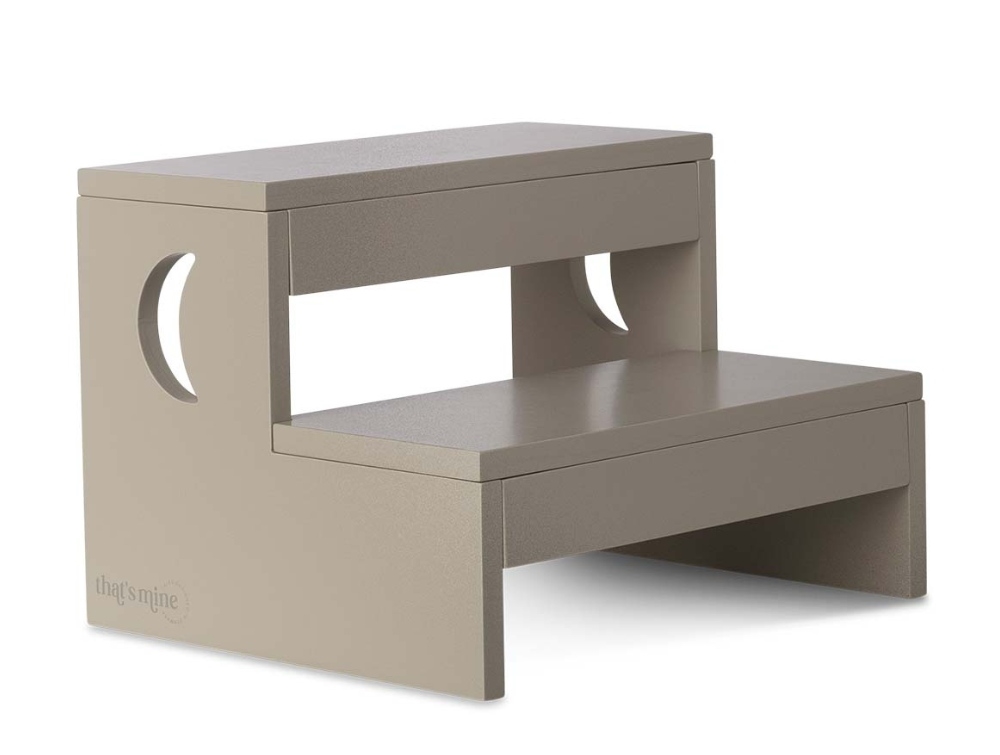 That's Mine Kate wooden step stool in feather grey with moon cut-outs