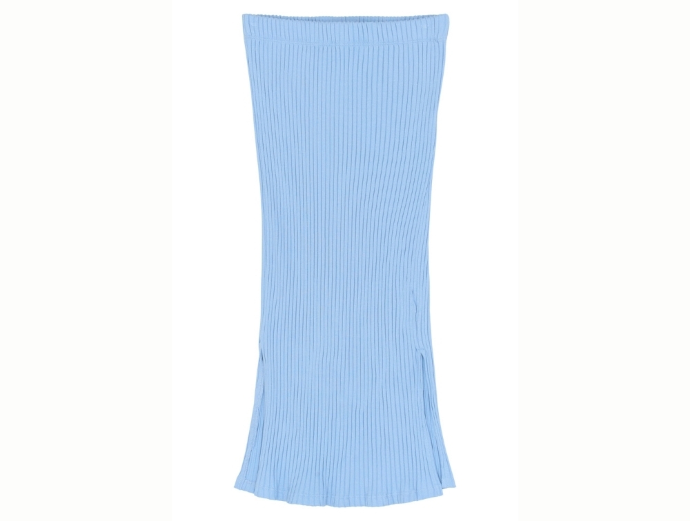 Long ribbed skirt in light blue shade (forever blue) from THE NEW featuring a soft rib texture for a flexible and comfortable fit.