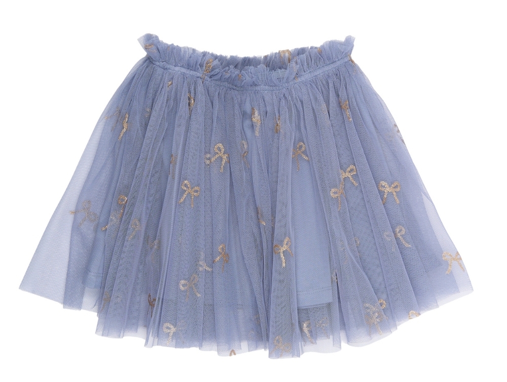 Tulle skirt in blue shade (tempest aop) from THE NEW Siblings with embroidered bows. The skirt is made from layered tulle, giving it a light and festive look. The soft elastic waistband ensures a comfortable fit.