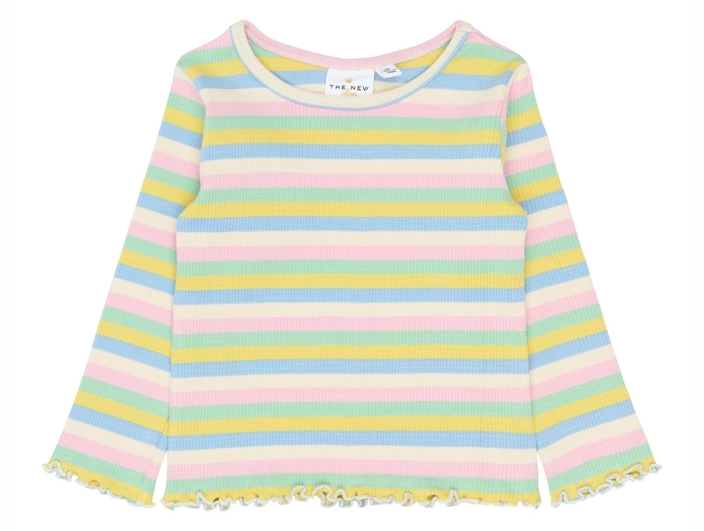 Ribbed long-sleeve tee in multi striped from THE NEW SIBLINGS featuring pastel stripes in blue, pink, yellow and green.